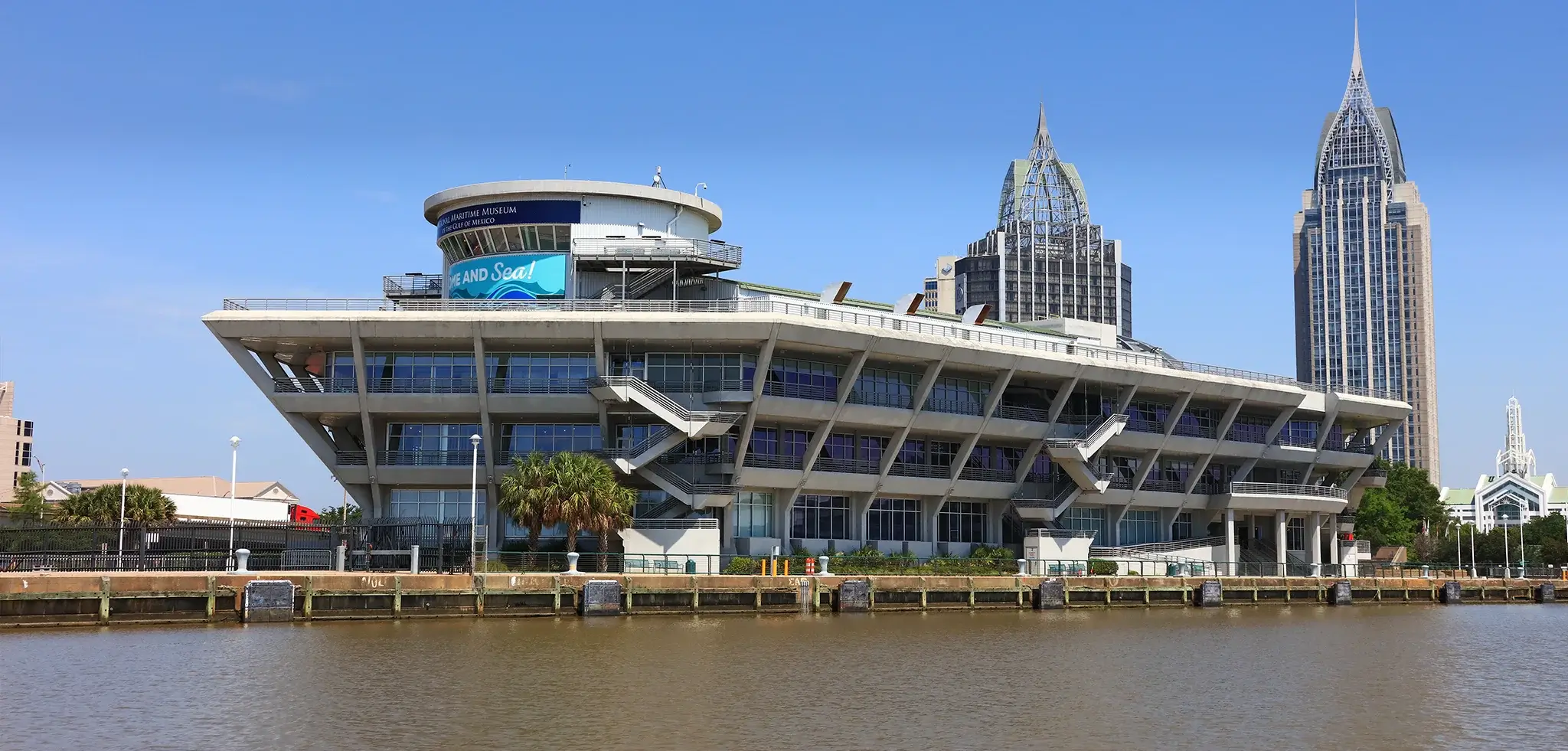 The National Maritime Museum of the Gulf is the only museum in the world dedicated to the rich history and traditions of the Gulf of America. With more than 80 immersive exhibits and interactives, the Museum has something for maritime lovers of every age. During your visit you can pilot a cargo ship up the Mobile River; dive beneath the surface to explore historic shipwrecks; and step inside a ship’s cargo container. And while you’re here, don’t forget to step out onto one of our balconies to see the Port of Mobile in action!