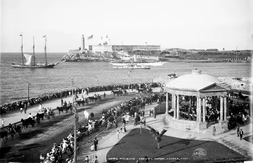 Women faced very limited professional opportunities during the early 1900s. Rather than marrying and settling into a domestic routine, Wright chose adventure and again traveled south, along with her mother, her “constant, patient, tireless companion,” for a newspaper job at the Havana Post. In her eloquent 1910 memoir, Cuba, Wright described steaming into Havana Harbor before dawn. She and her mother were on deck when they sighted Morro lighthouse’s bright beacon. “Then, gradually, details of a picture detached themselves from a gray background,” she wrote. “We made out the outlines of Morro. We saw minor lights, those of the barracks on the sloping shore to the left of it, and those, more numerous, of the city itself, across the channel, at the right.” The sky brightened further, the sun rose, and before them lay such a city “as I had not supposed ever existed off the black curtain of a stage set for a light opera.” The bay shore curved before them in “gracious welcome,” and over it all “lay the most delicate, shifting, blue-gray mist, which made what our eyes beheld seem the more unreal. I felt that we had arrived in an enchanted land.”
