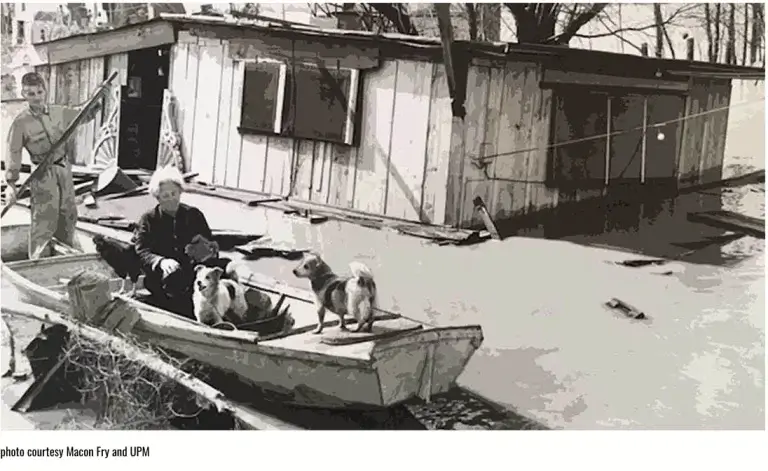 But there were also good times, as when a dredge boat captain joined the family for Sunday dinner. They all feasted on pig tails and cabbage, and afterwards “the whole family would sing” to the accompaniment of an uncle’s guitar. Only later, the man admitted, did he realize “how rich I was, having the Mississippi River as a backyard.”