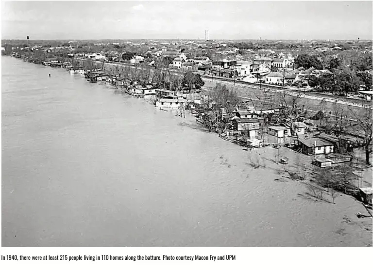 Fry’s intense interest in his quirky settlement prompted him to delve into its history and people. Its story was underrepresented in city histories, but he didn’t have to look far to find references to it. Mark Twain knew about the batture and like many observers then and since, held unflattering opinions about its residents.